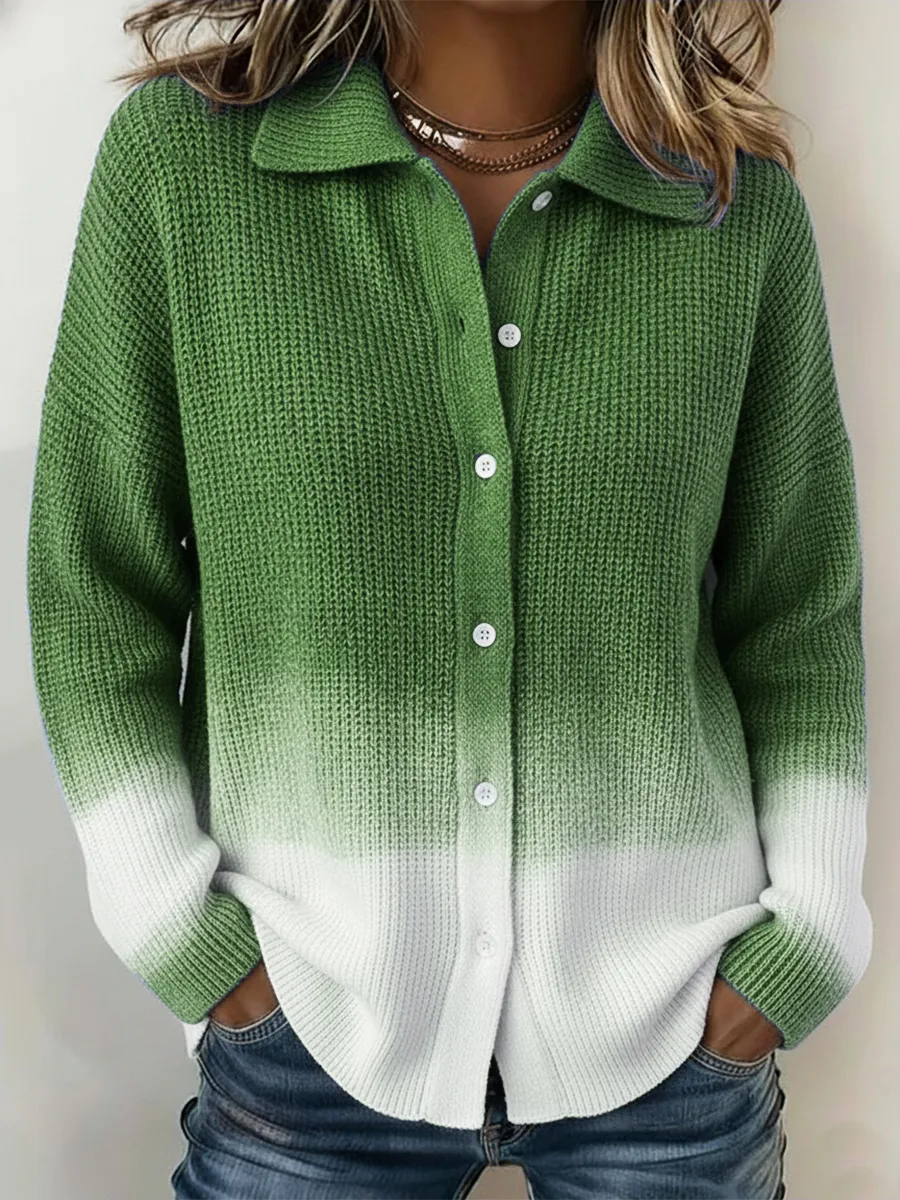 Product Details:Product ID:XIXI2HV7NA Gender: For Women Style: Casual Fit Type:Fit Shirt Length: Over Hip Sleeves Length: Long Sleeve Collar: Shirt Collar Material: Cotton Knited Material Stretch: No Stretch Pattern Type:Gradient Weight: 0.300kg Package: 1 x Sweater Size Guide For Women