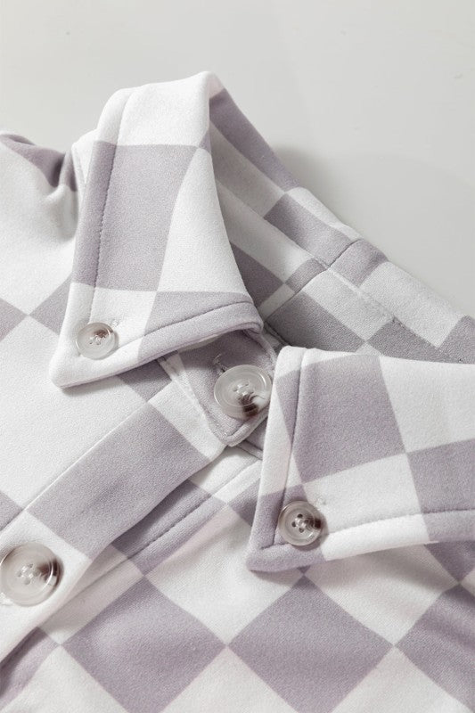 This playful shacket is your new favorite layering piece or stand-alone top. Its trendy pattern adds fun to any outfit. while the pockets keep your essentials close and hands free. With an easy button-front closure. you'll be ready to go in a snap—stylish and practical all in one!