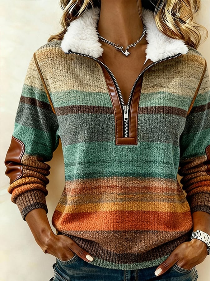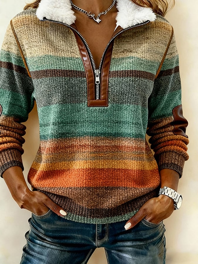 Women'S Casual Color-Blocked Pullover Sweatshirt