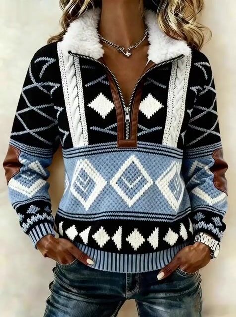 Women'S Casual Loose Color-Blocked Print Sweatshirt