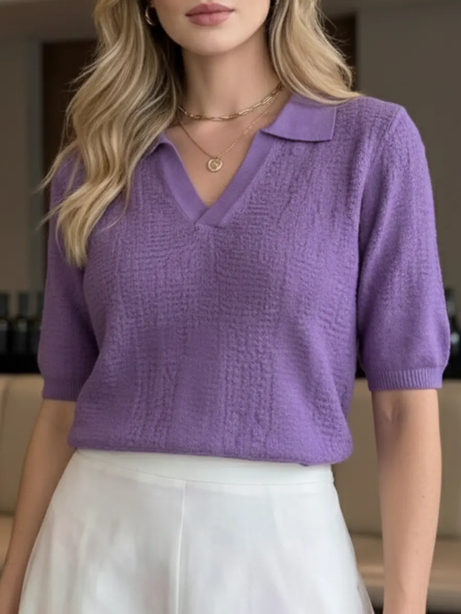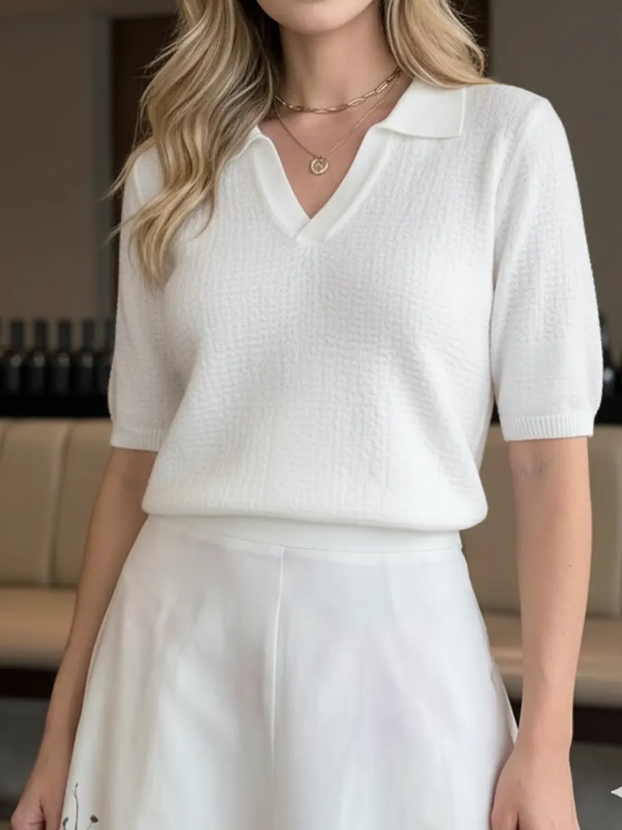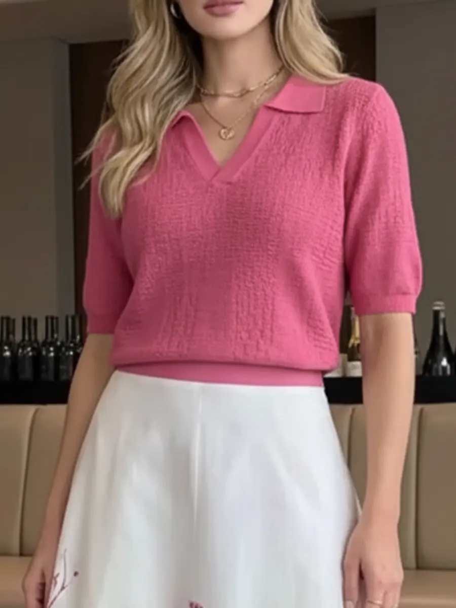 Product Details: Product ID:RAM0UDPKKN Gender: For Women Style: Casual Fit Type:Regular Shirt Length: Regular Sleeves Length: Short sleeve Collar: Round Material: cotton Blend Knit Material Stretch: middle Stretch Pattern Type: Weight: 0.3kg Package: 1 x Sweater Size Guide For Women| Size | UK | US | EUR | Length | Chest | Hip |